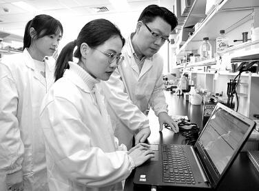 中科院神經(jīng)科學(xué)研究所實驗室的研究人員在討論實驗設(shè)計。新華社發(fā)
