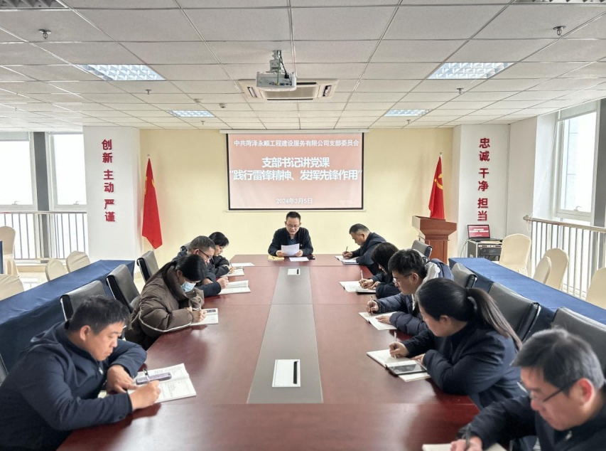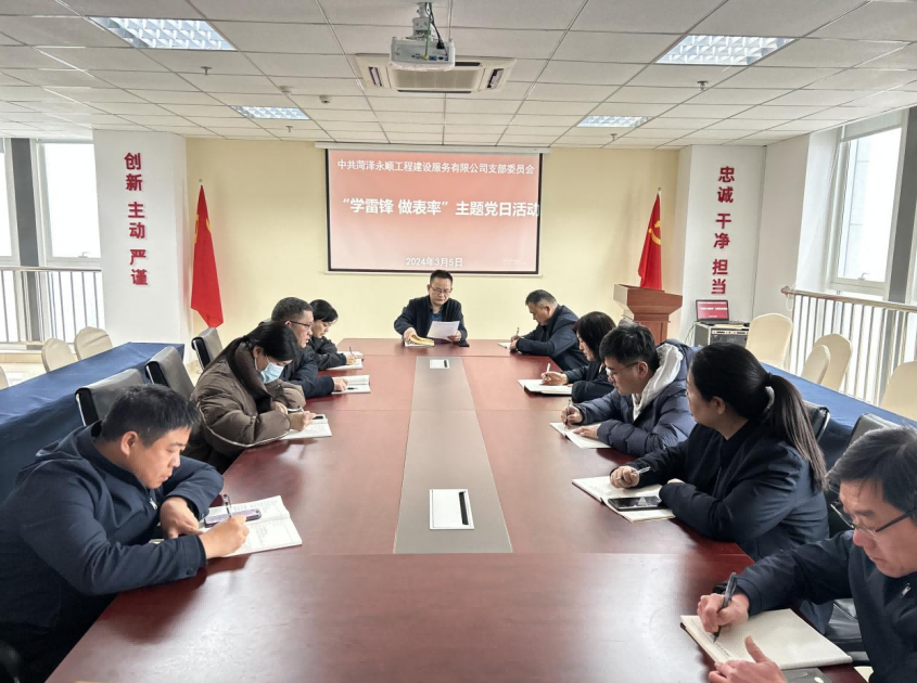 3月5日,菏澤永順工程建設(shè)服務(wù)公司黨支部開展“學雷鋒、做表率”主題黨日活動,全體黨員參加。會議由支部書記牛忠建講授“踐行雷鋒精神、發(fā)揮先鋒作用”主題黨課